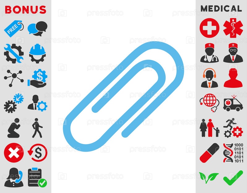 Иллюстрация значок скрепки. Стиль является плоской символ, синий цвет, закругленные углы, белый фон