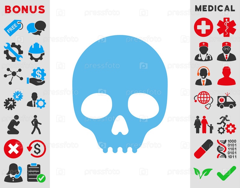 Череп иллюстрации значок. Стиль является плоской символ, синий цвет, закругленные углы, белый фон