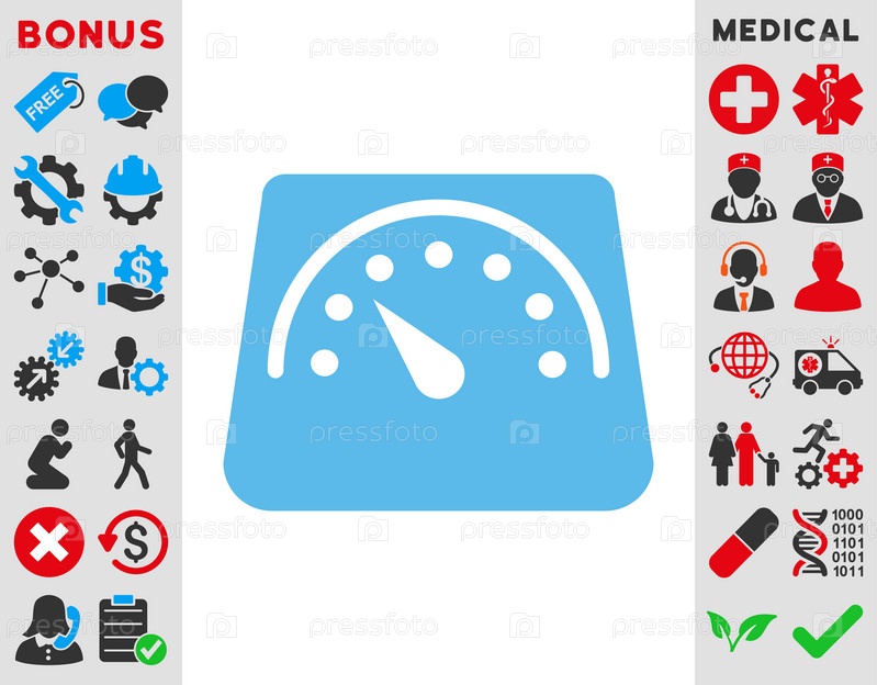 Вес счетчика иллюстрации значок. Стиль является плоской символ, синий цвет, закругленные углы, белый фон
