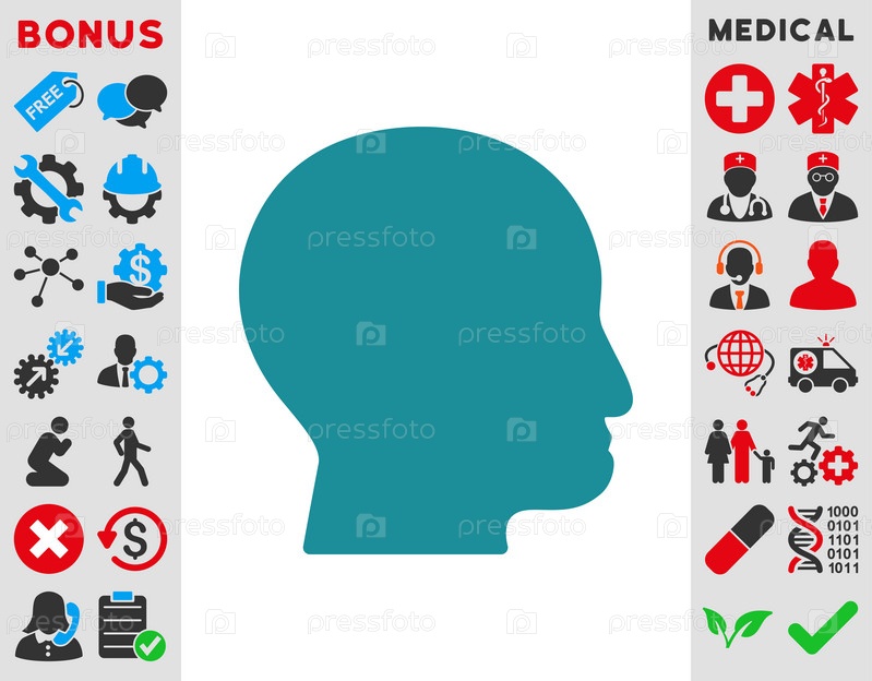 Лысые головы иллюстрации значок. Стиль является плоской символ, мягкий голубой цвет, закругленные углы, белый фон