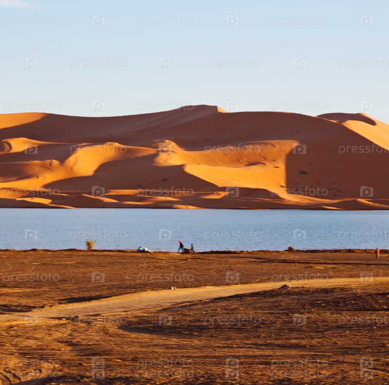 Солнце в пустыне и озеро