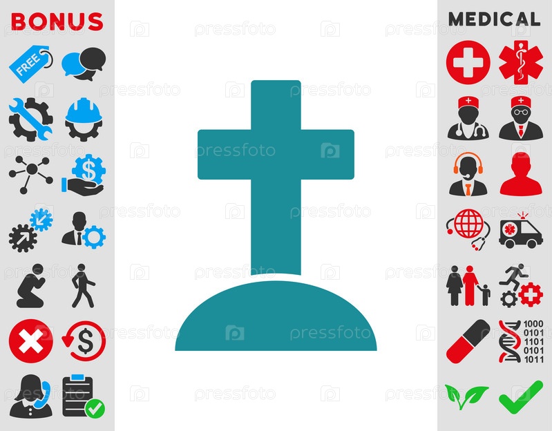 Могила иллюстрации значок. Стиль плоский символ, нежно голубого цвета, с закругленными углами, на белом фоне