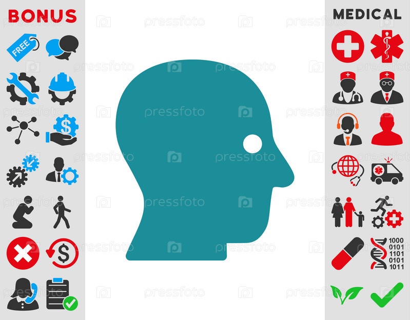 Тихая голова иллюстрации значок. Стиль является плоской символ, мягкий голубой цвет, закругленные углы, белый фон