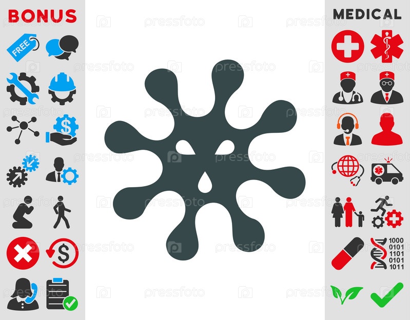 Вирус иллюстрации значок. Стиль является плоской символ, мягкий голубой цвет, закругленные углы, белый фон