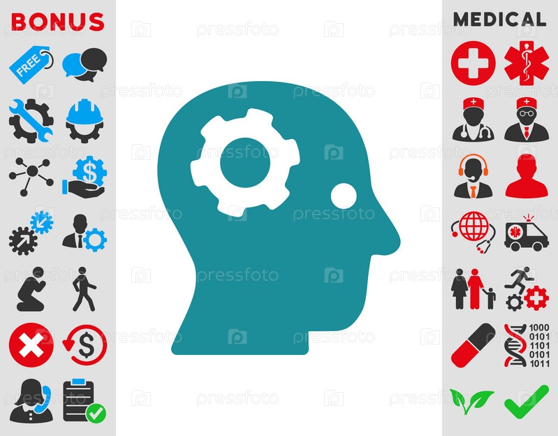 Мышление иллюстрации значок. Стиль является плоской символ, мягкий голубой цвет, закругленные углы, белый фон