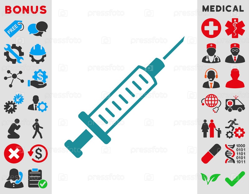 Шприц иллюстрации значок. Стиль является плоской символ, мягкий голубой цвет, закругленные углы, белый фон