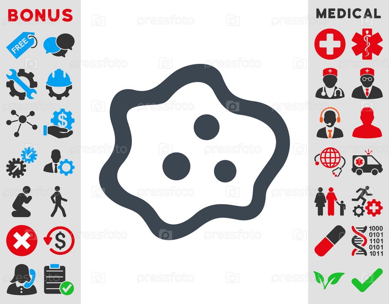 Амеба иллюстрации значок. Стиль является плоской символ, гладких синий цвет, закругленные углы, белый фон