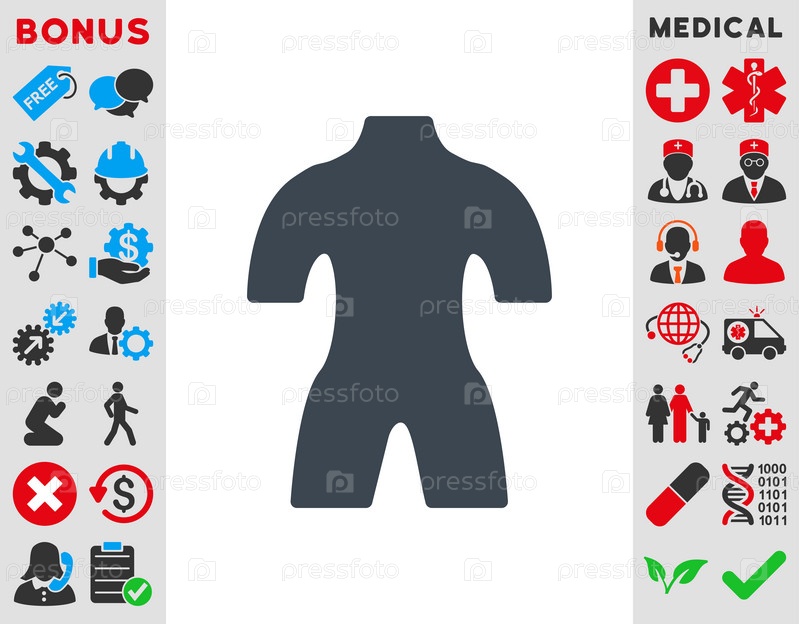 Тело иллюстрации значок. Стиль является плоской символ, гладких синий цвет, закругленные углы, белый фон