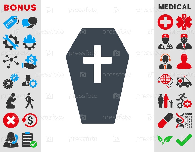 Гроб иллюстрации значок. Стиль является плоской символ, гладких синий цвет, закругленные углы, белый фон