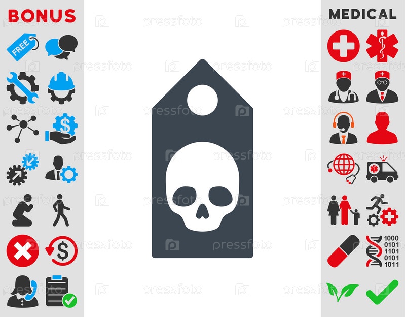 Смерть купона иллюстрации значок. Стиль является плоской символ, гладких синий цвет, закругленные углы, белый фон