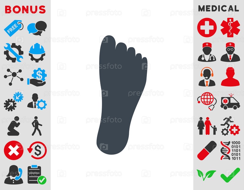 Нога иллюстрации значок. Стиль является плоской символ, гладких синий цвет, закругленные углы, белый фон