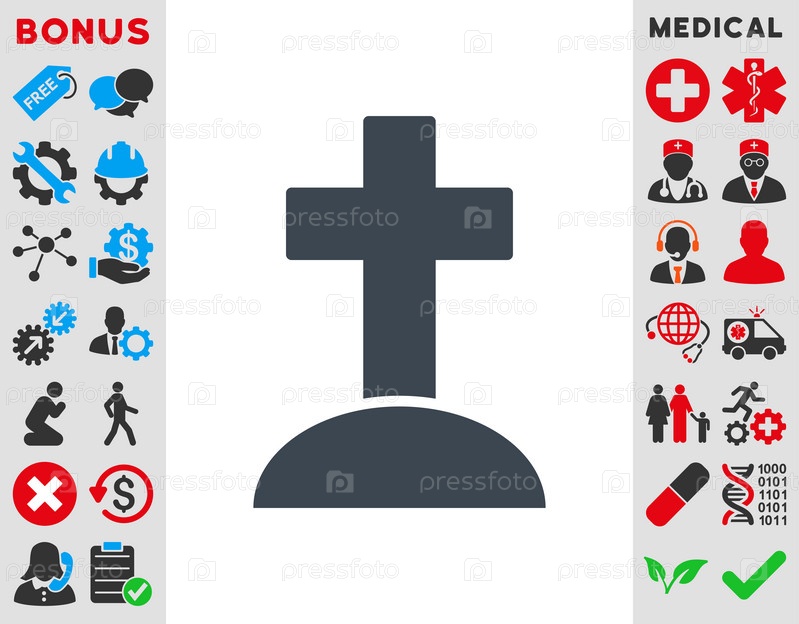 Могила иллюстрации значок. Стиль плоский символ, ровный синий цвет, скругленные углы, белый фон