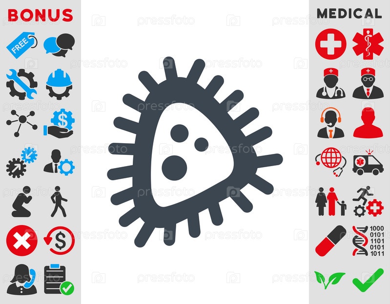 Микро паразита иллюстрации значок. Стиль является плоской символ, гладких синий цвет, закругленные углы, белый фон