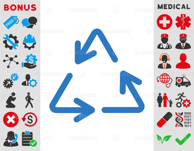 Рециркулировать иллюстрации значок стрелки. Стиль является плоской символ, гладких синий цвет, закругленные углы, белый фон