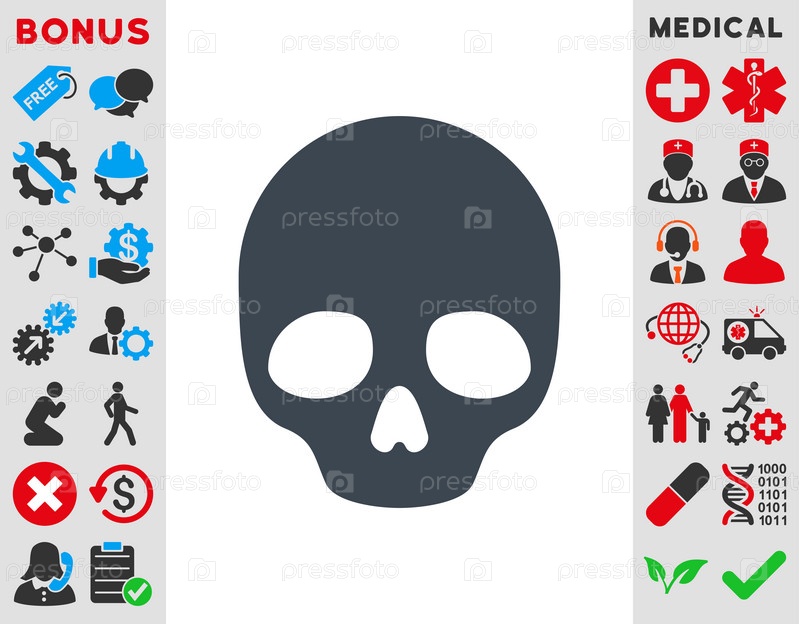 Череп иллюстрации значок. Стиль является плоской символ, гладких синий цвет, закругленные углы, белый фон