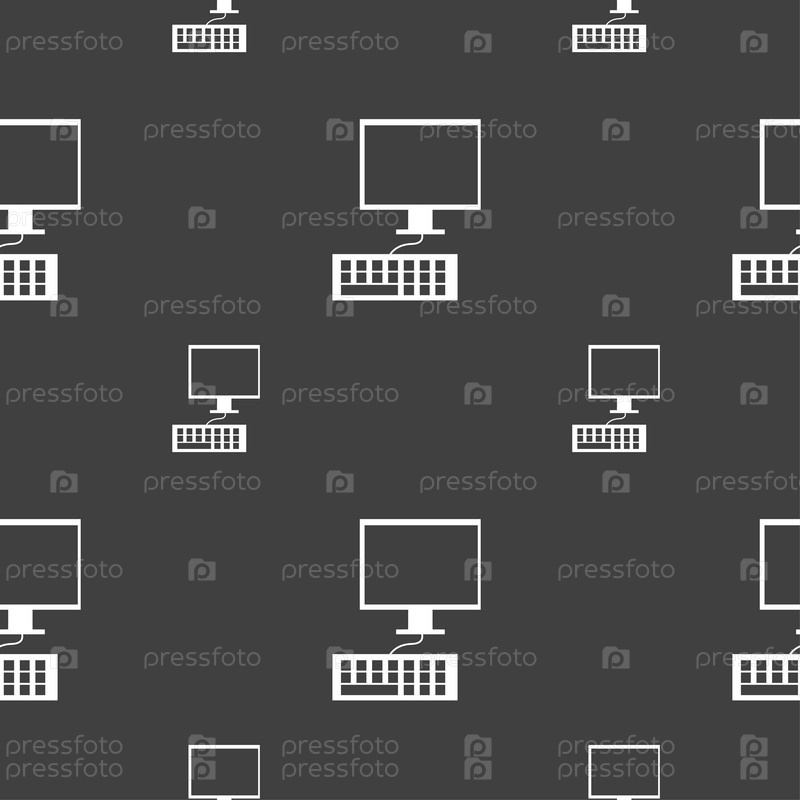 Монитор компьютера и клавиатура. Бесшовный узор на сером фоне. Вектор