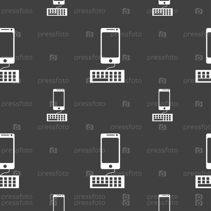 Компьютерная клавиатура и смартфон. Бесшовный узор на сером фоне. Вектор