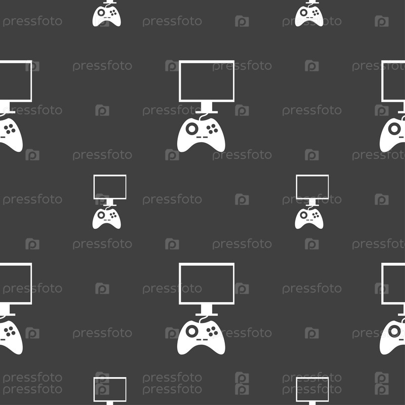 Джойстик и монитор. Бесшовный узор на сером фоне. Вектор