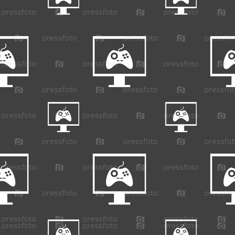 Джойстик и монитор. Бесшовный узор на сером фоне. Вектор