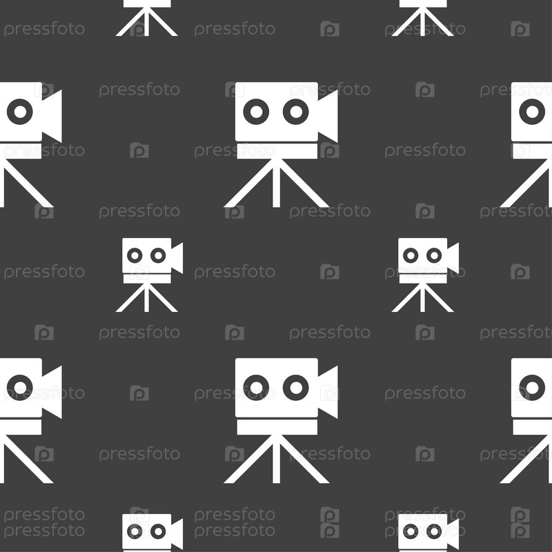 Видео камера. Бесшовный узор на сером фоне. Вектор