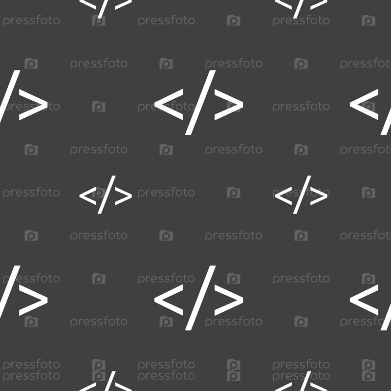 Символ язык программирования. Бесшовный узор на сером фоне. Вектор
