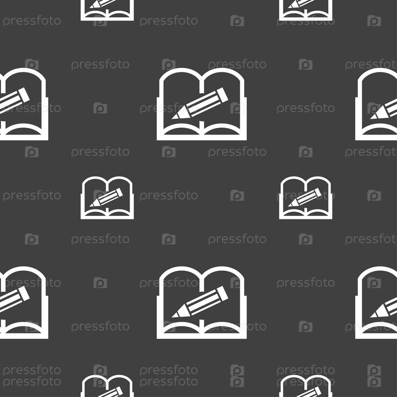 Открытая книга символ. Бесшовный узор на сером фоне. Вектор