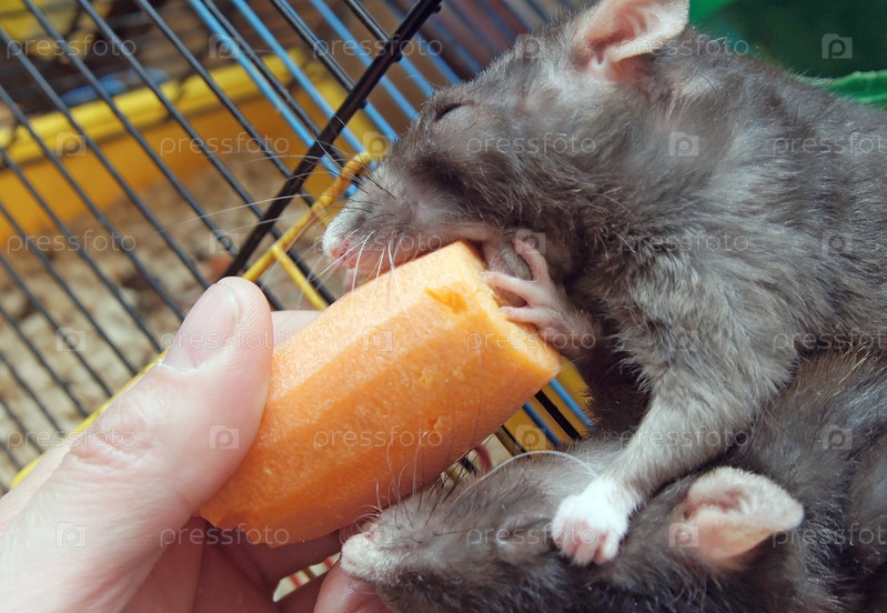 Мыши едят морковь из человеческих рук