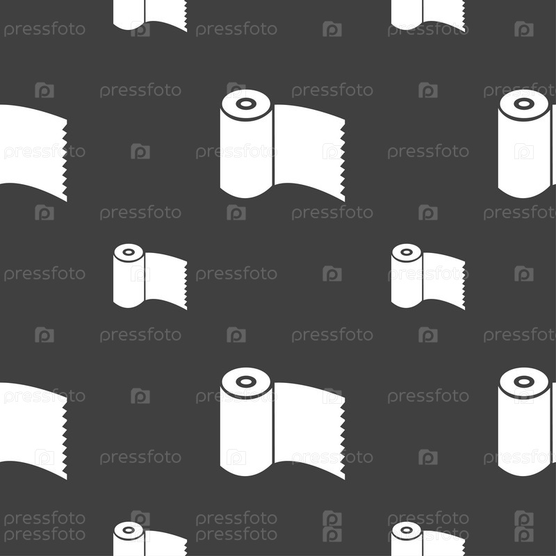 Туалетной бумаги значок. Бесшовный узор на сером фоне. Вектор