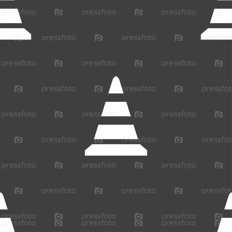 Значок конуса дороги. Бесшовный узор на сером фоне. Вектор