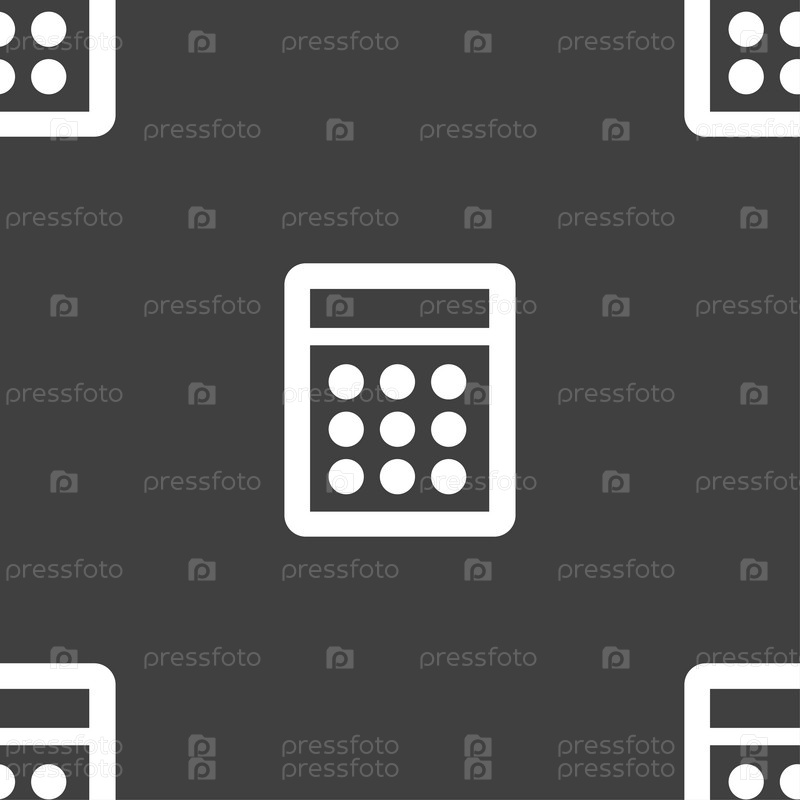 Иконка Калькулятор. Бесшовный узор на сером фоне. Вектор