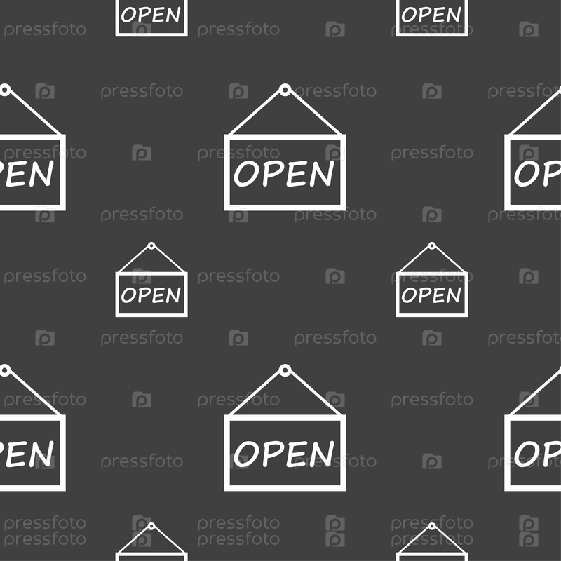Открыто. Бесшовный узор на сером фоне. Вектор