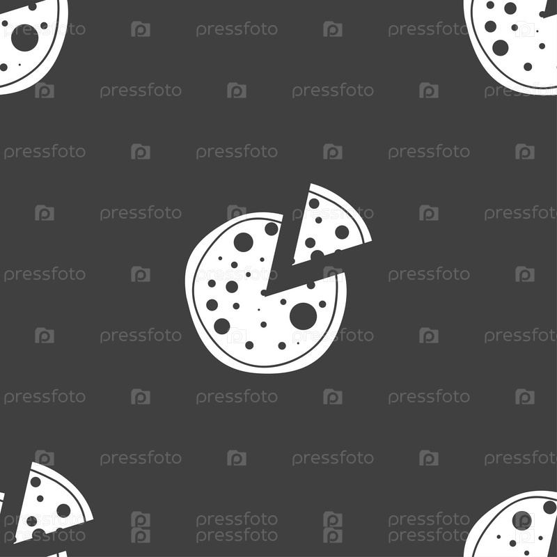 Пицца значок. Бесшовный узор на сером фоне. Вектор