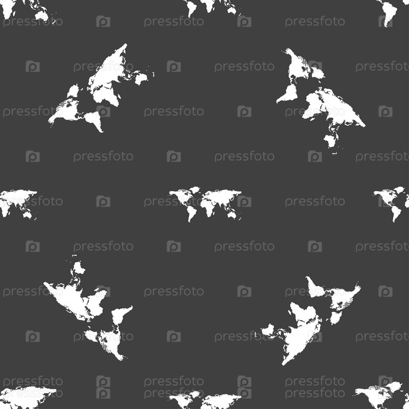 Карта мира. Бесшовный узор на сером фоне. Вектор