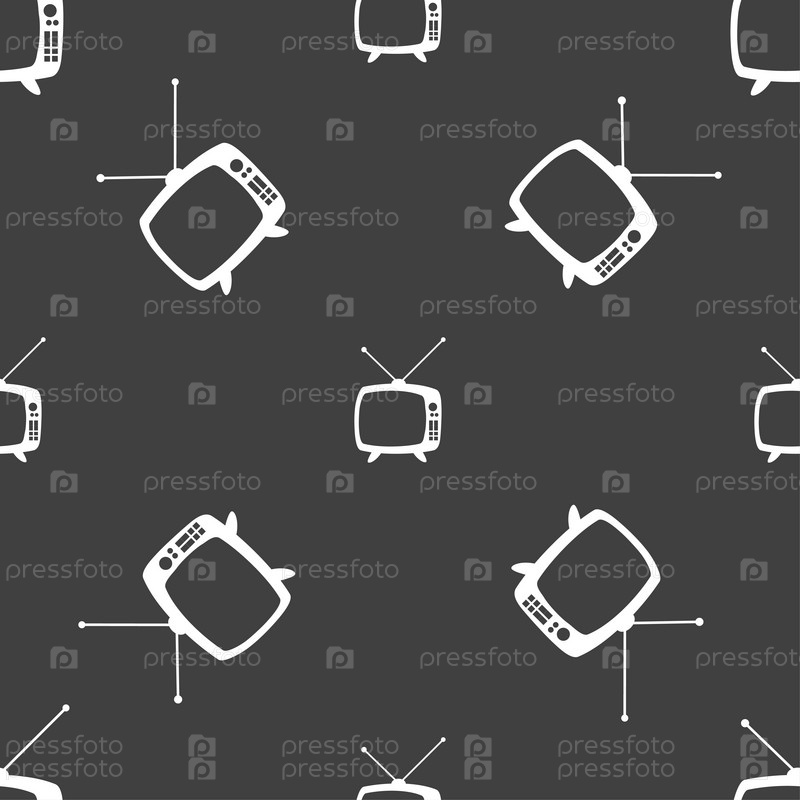 Ретро ТВ. Бесшовный узор на сером фоне. Вектор