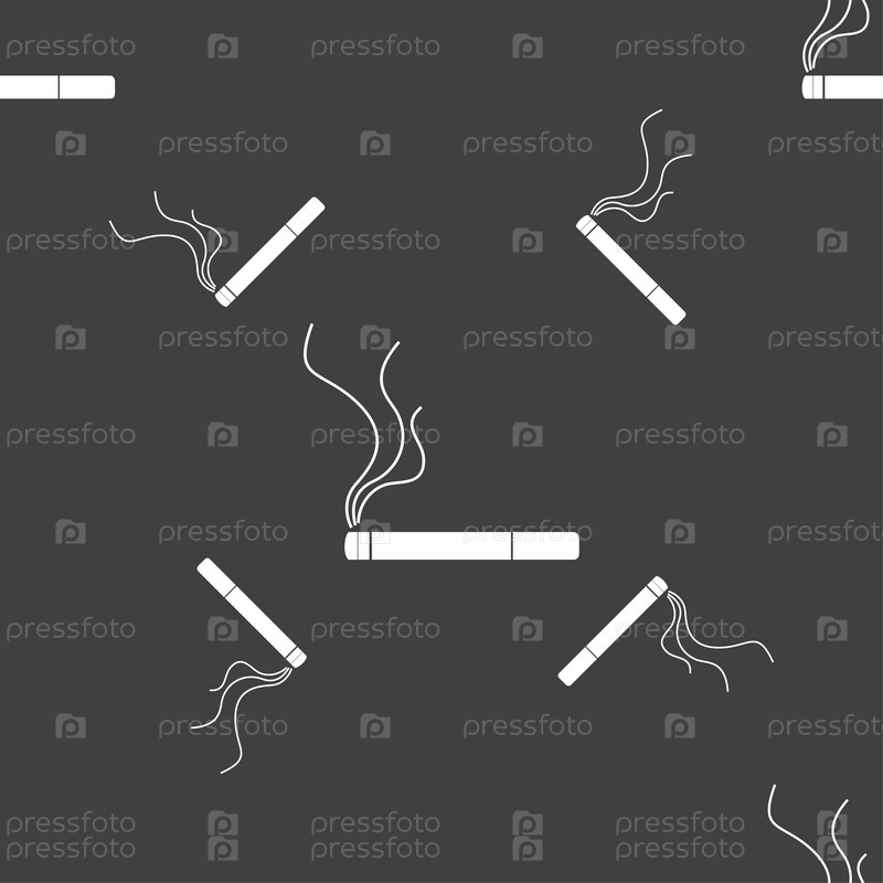 Сигарета. Бесшовный узор на сером фоне. Вектор