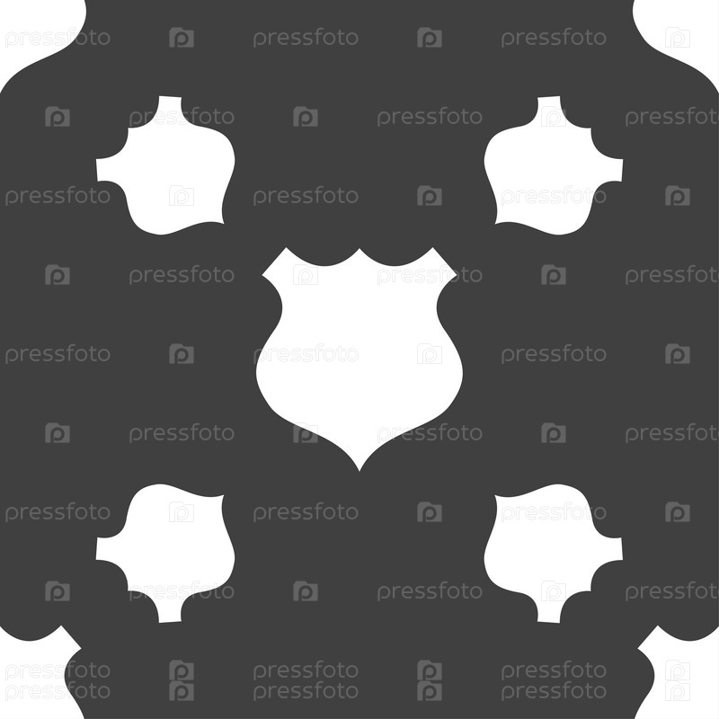 Щит значок знак. Бесшовный узор на сером фоне. Вектор