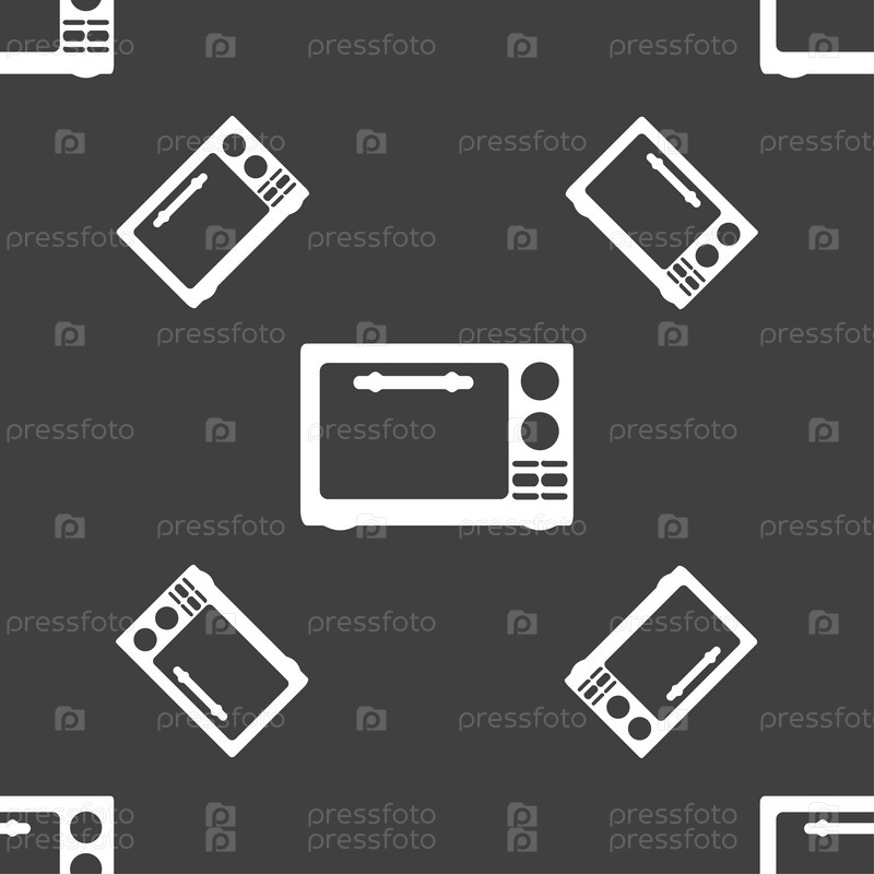 Микроволновая печь. Бесшовный узор на сером фоне. Вектор
