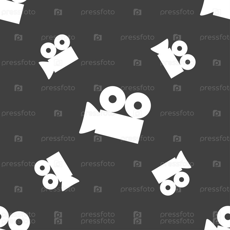 Иконка Видеокамера. Бесшовный узор на сером фоне. Вектор
