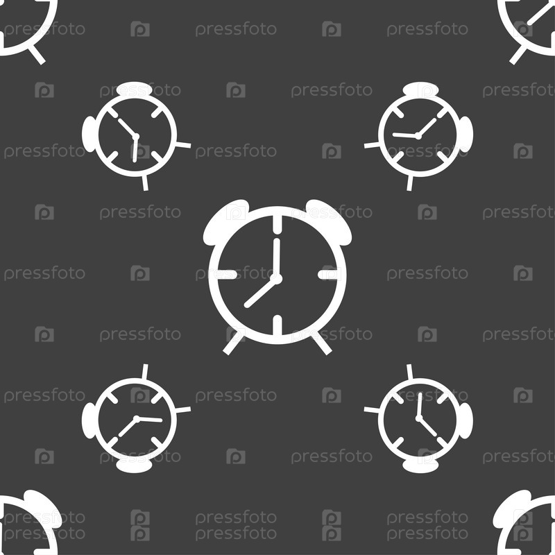Будильник. Бесшовный узор на сером фоне. Вектор