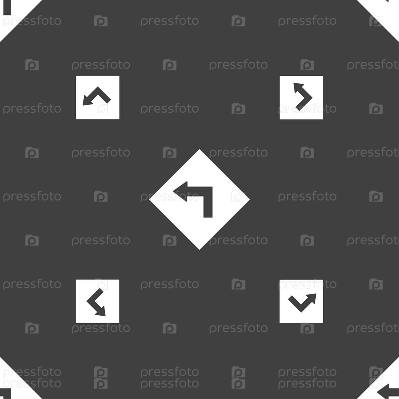 Дорожный знак налево. Бесшовный узор на сером фоне. Вектор
