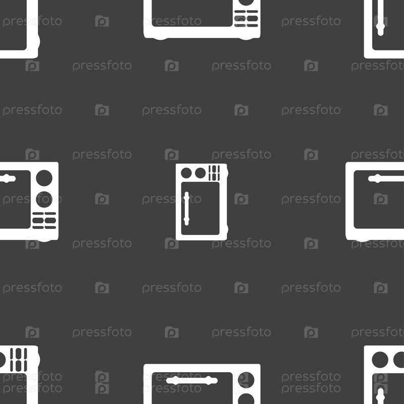 Микроволновая печь. Бесшовный узор на сером фоне. Вектор