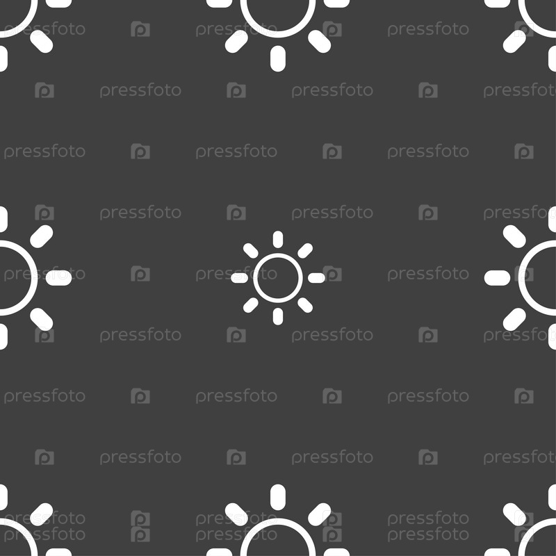 Яркость значок знак. Бесшовный узор на сером фоне. Вектор
