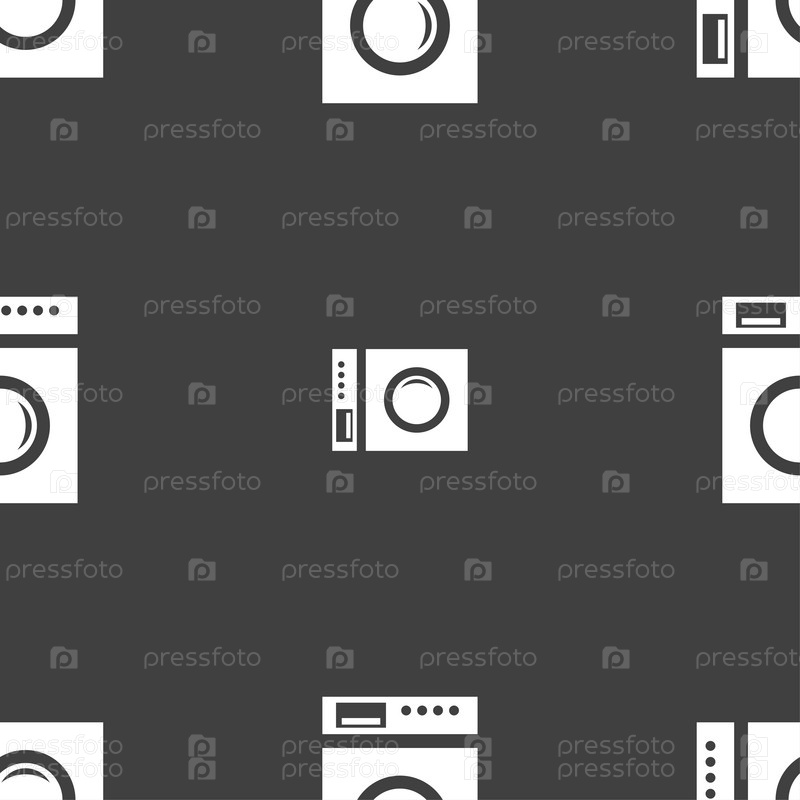 Стиральная машина. Бесшовный узор на сером фоне. Вектор