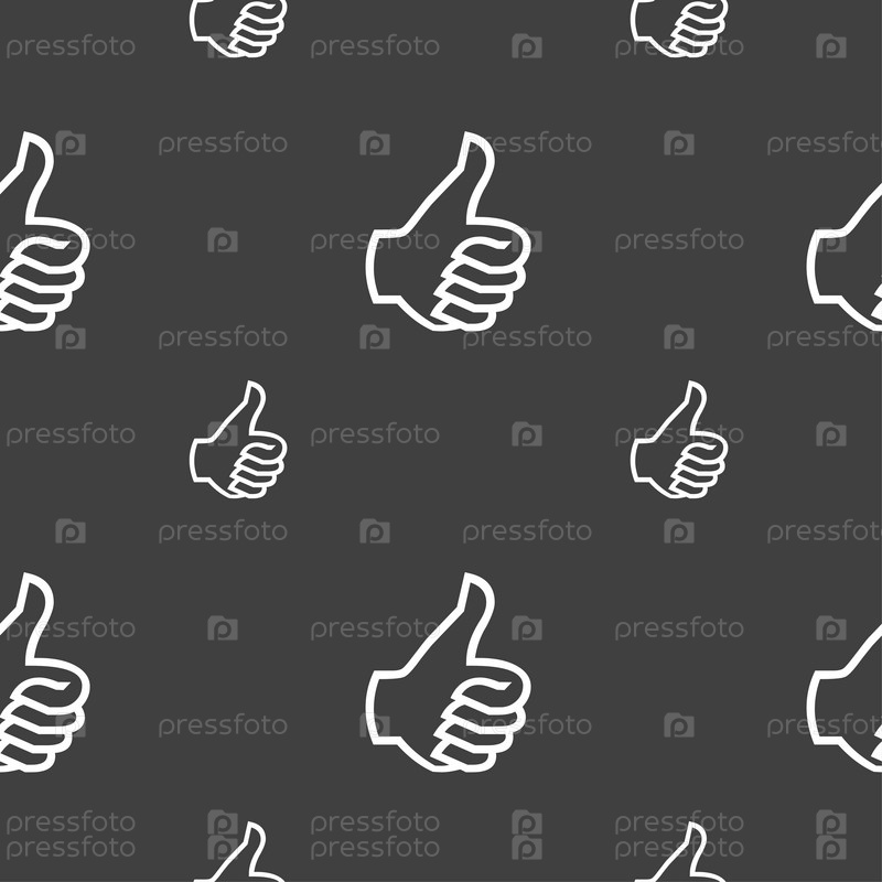 Палец руки вверх. Бесшовный узор на сером фоне. Вектор
