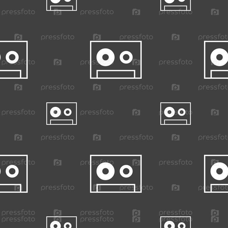 Символ аудиокассета. Бесшовный узор на сером фоне. Вектор