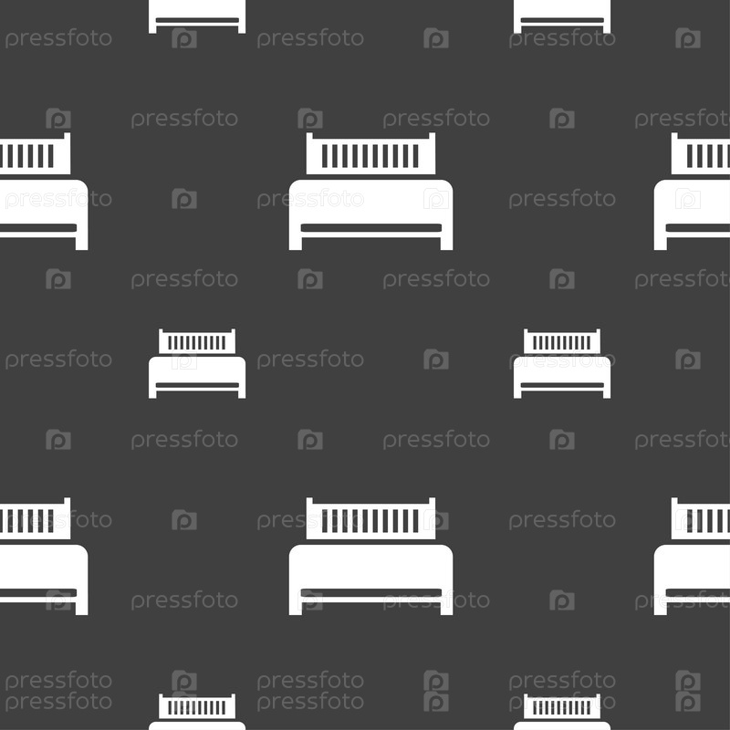 Отель, кровать. Бесшовный узор на сером фоне. Вектор