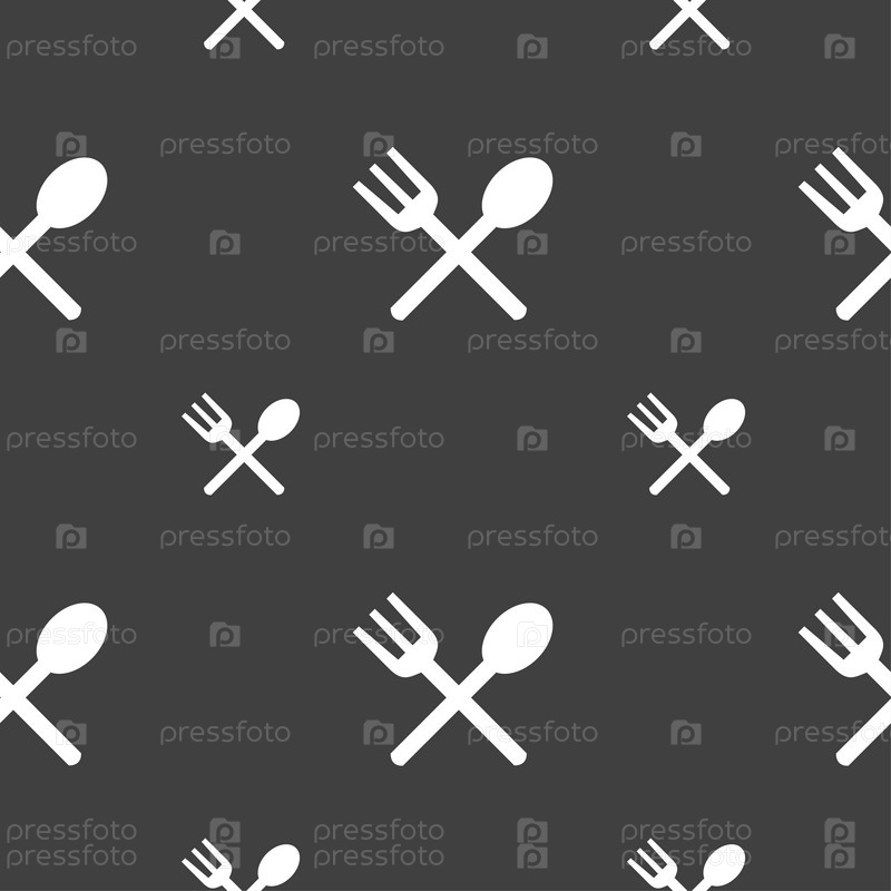 Вилка и ложка. Бесшовный узор на сером фоне. Вектор