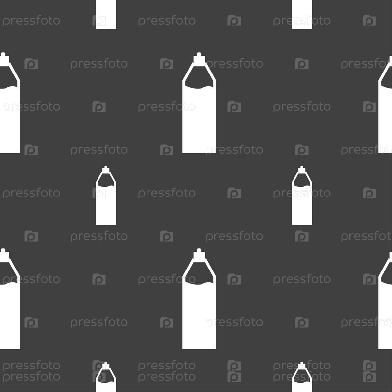 Пластиковая бутылка с напитком. Бесшовный узор на сером фоне. Вектор