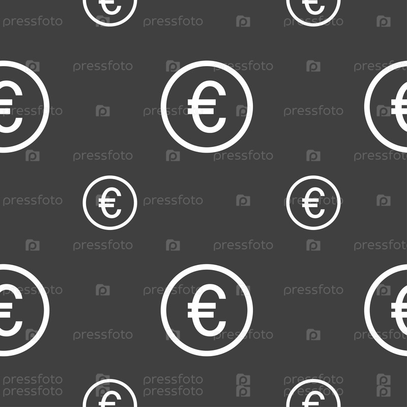 Значок знак евро. Бесшовный узор на сером фоне. Вектор