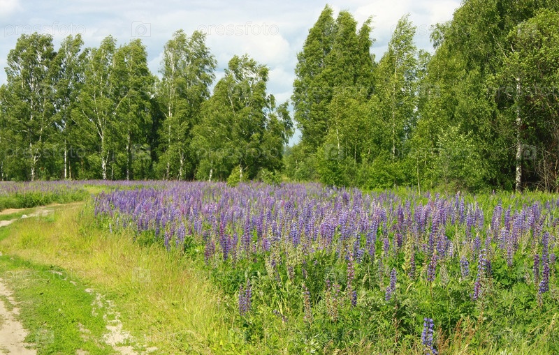 Пейзаж средней полосы с фиолетовыми цветами